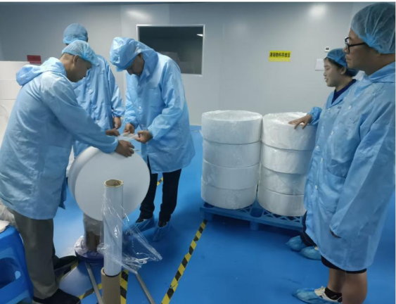Bu fabrika denetimi, müşteriye üretim yeteneklerimiz ve kalite yönetim sistemimiz hakkında kapsamlı bir anlayış sağlamayı amaçladı. Müşterimiz, çalışma arkadaşlarımız eşliğinde birinci kattaki gazlı bez üretim atölyesini, ikinci kattaki gazlı bez katlama ve paketleme atölyesini gezerek, sipariş ettiği kek rulolarının dilimleme sürecini gözlemledi. Müşteri, istikrarlı ve standartlaştırılmış üretim ortamımızdan büyük övgü aldığını ifade etti ve özellikle istikrarlı bir ortam sağlamak için kurulan nemlendirme sistemiyle ilgilendi.